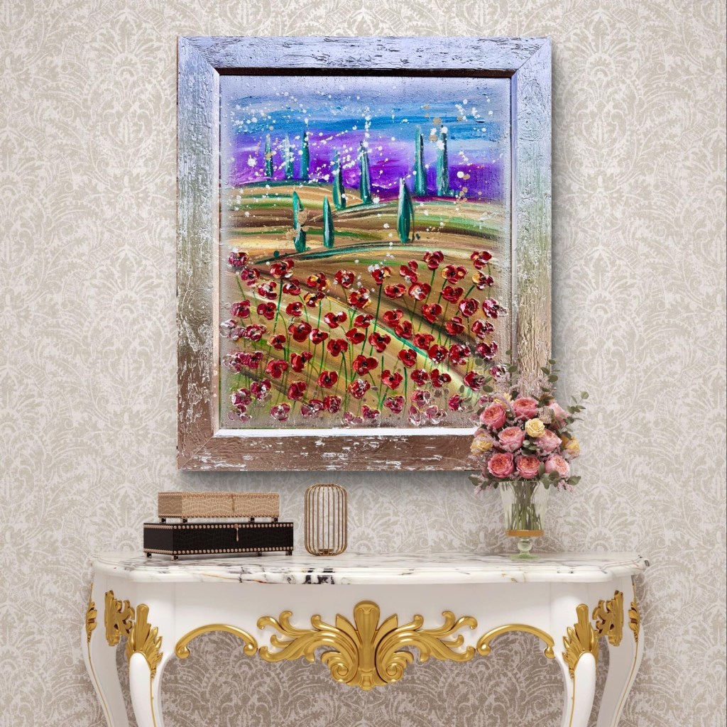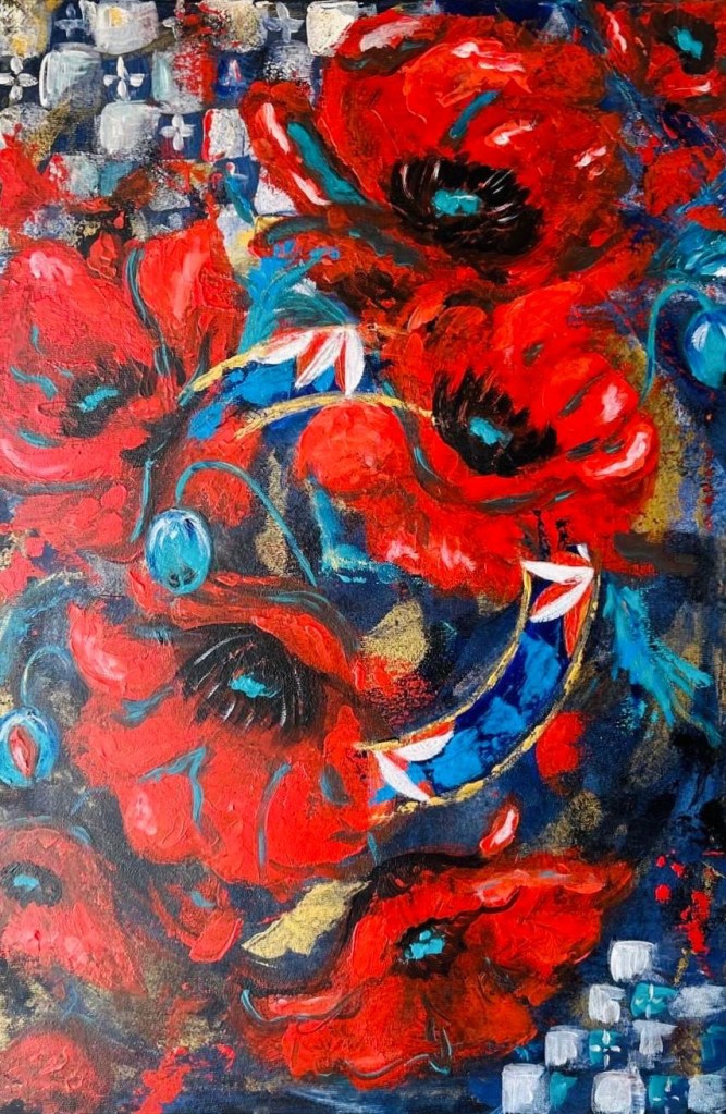 Opera originale degli anni ’60 rivisitata con un restyling contemporaneo. L’argento vivo e il rosso dei papaveri guidano l’anima verso rinascita, forza e libertà interiore.